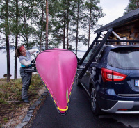 Mit Dropracks ist es möglich, Kajaks selbstständig zu verladen, ohne Angst vor körperlicher Anstrengung und dem Risiko von Fahrzeugbeschädigungen. Sie können im abgesenkten Ladezustand am Kajak (den Kajaks) vorbeigehen und vor der Fahrt sicherstellen, dass diese mit den Verzurrgurten sicher befestigt sind.