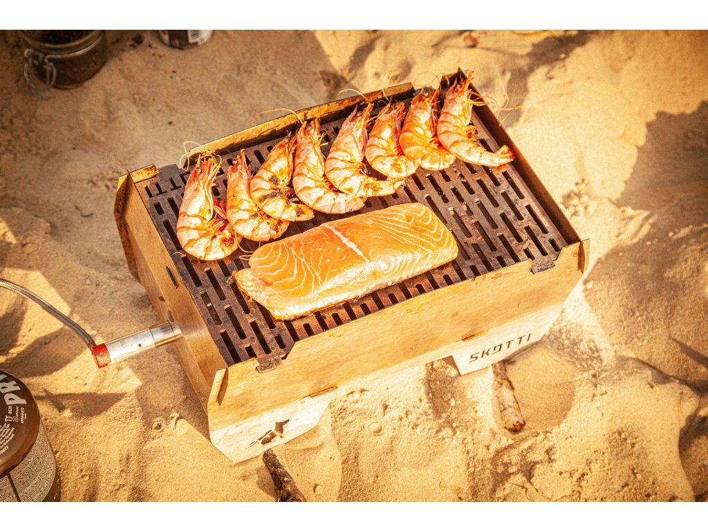 Der Marken-SKOTTI bleibt die Top-Wahl zum Grillen, Kochen, Braten und Backen im Park, am See, auf dem Balkon – auf dem Tisch oder auf der Picknickdecke. Wir haben sogar auf einem Snowboard, einem Paddleboard auf offener See oder auf der Motorhaube eines Autos gegrillt – mit dem SKOTTI können Sie nicht nur überall grillen, sondern auch mit Gas, Kohle oder Holz kochen, braten, backen oder erhitzen. Er ist der weltweit erste Gasgrill, der aus steckbaren Komponenten besteht: Sie können ihn in einer Minute ohne Werkzeug zusammenbauen. Er heizt sich mindestens genauso schnell auf wie ein normaler Standgrill. Gaskartusche aufdrehen, Feuerzeug an die Zündöffnung halten, fertig!