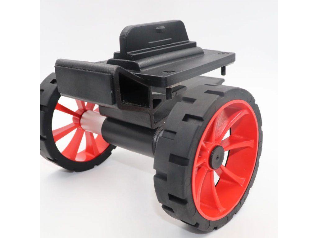 Der Körper der Transporträder wird zwischen dem Zürich- und dem Walensee mithilfe der Spritzgusstechnologie geformt. Die Räder sind ebenfalls aus POM-Kunststoff gefertigt, auch hier kommt die Spritzgusstechnologie zum Einsatz. Die aus weicherem Gummi gefertigten Reifen bieten ein tolles Fahrerlebnis. Die Achsen sind je nach gewählter Ausstattungsvariante aus Polyamidkunststoff oder Aluminium.