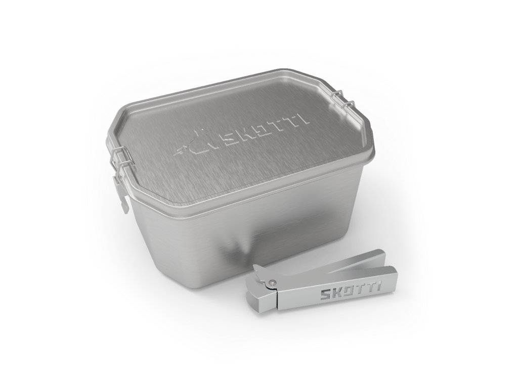 Of course, you can SKOTTI Box simply use as a robust, eco-friendly and durable alternative to plastic storage containers. The precisely fitting silicone sealing ring prevents leakage, and two extra-strong locking clips on the sides ensure that SKOTTI Box it won't accidentally open in your bag or backpack.