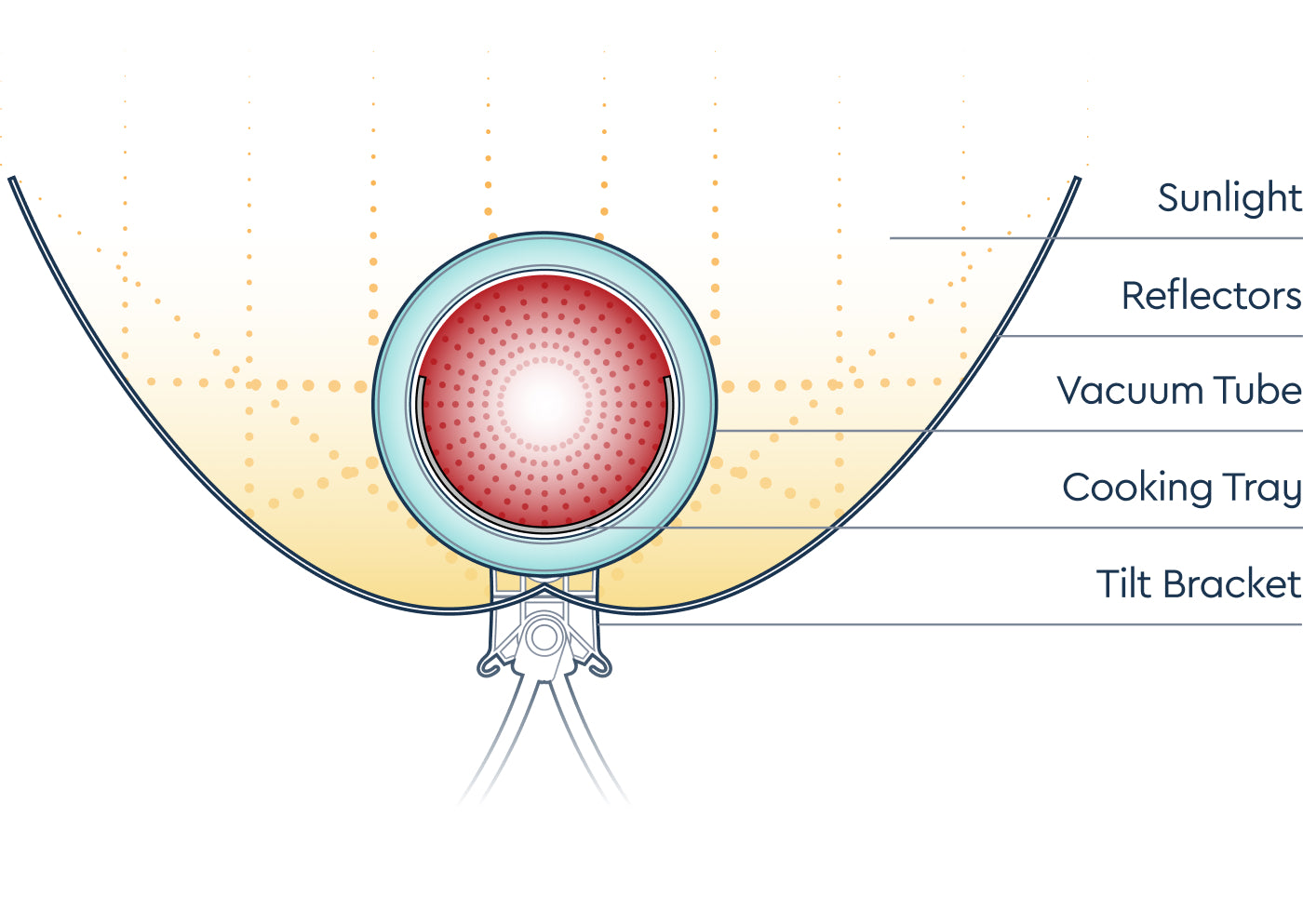 The vacuum tube provides incredible insulation, so you can solar cook in wind, freezing cold or clouds.
