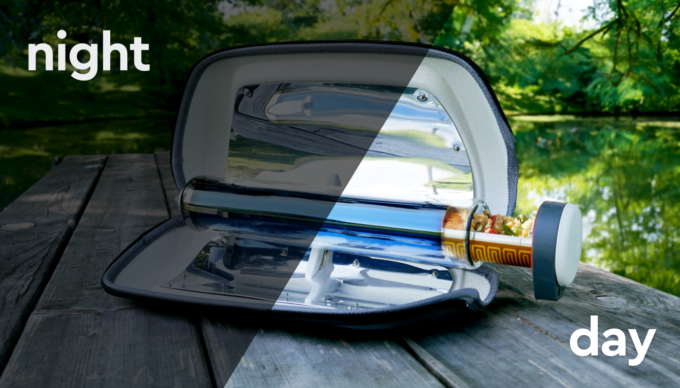 Cooking never ends with the new Hybrid 12V Baking Tray GoSun Go. It enables solar cooking during the day, then becomes a 12-volt oven at night, in the vehicle, and away from the sun anytime, anywhere.