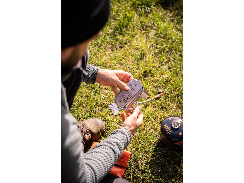SKOTTI Mini and Booster are a true dream team for all outdoor cooking enthusiasts. No more long waits and trouble with starting a fire. Combine the ultra-compact SKOTTI Mini with the gas power of the Booster and light the fire on the grill in the blink of an eye – you'll be grilling, cooking or stewing faster than you can say "light it!".