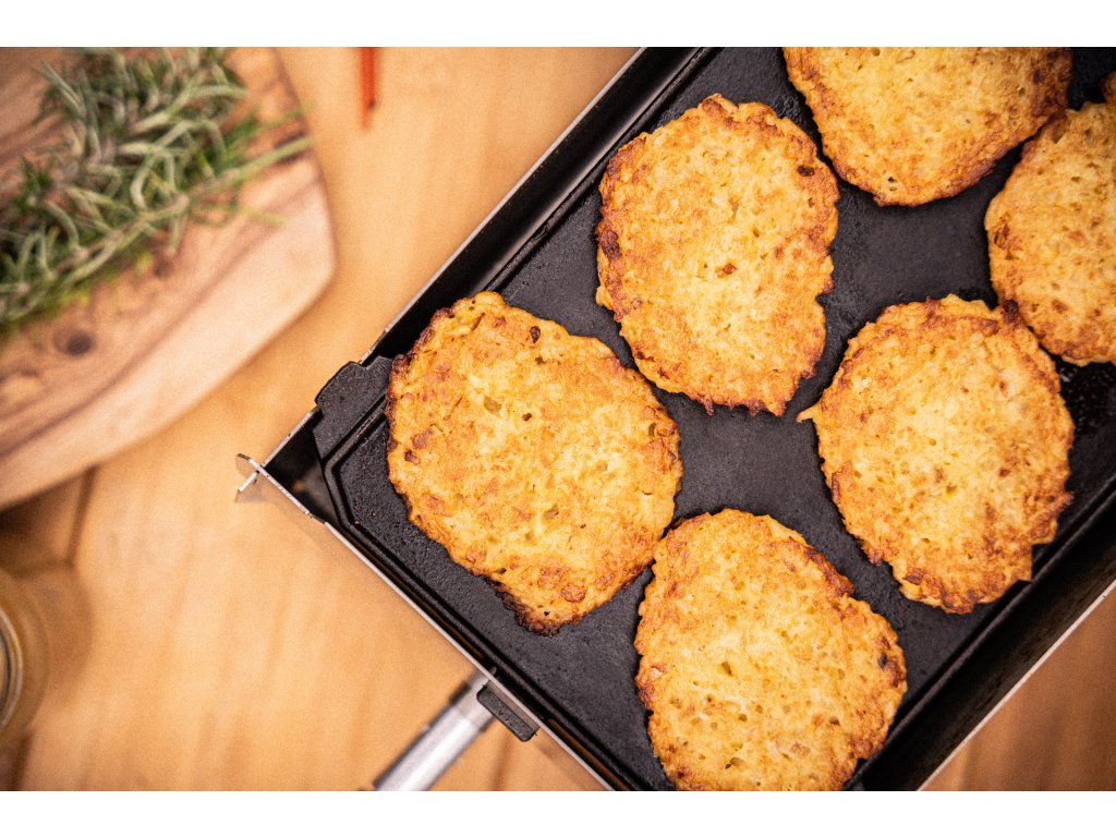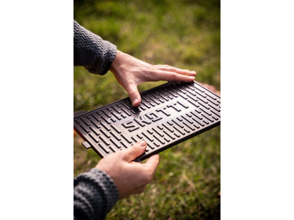 Se Skotti KAST posunete své grilování na novou úroveň. Jednoduše jej položte na gril, rozehřejte a můžete začít. Ať už jde o šťavnaté steaky, křehké rybí filety nebo křupavou zeleninu – plancha zaručuje naprosto dokonalé otisky grilu a čistou chuť. Díky extrémní retenci tepla zůstane vše šťavnaté. A co je nejlepší: je tak robustní, že vám vydrží dlouho. Prostě ve stylu Skotti.