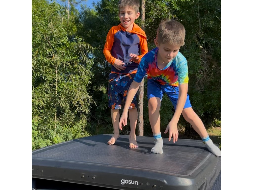 Kompaktowy bagażnik dachowy GoSun EV zawiera 1 100 W energii słonecznej, co wystarcza na przejechanie około 80% rocznych kilometrów.
