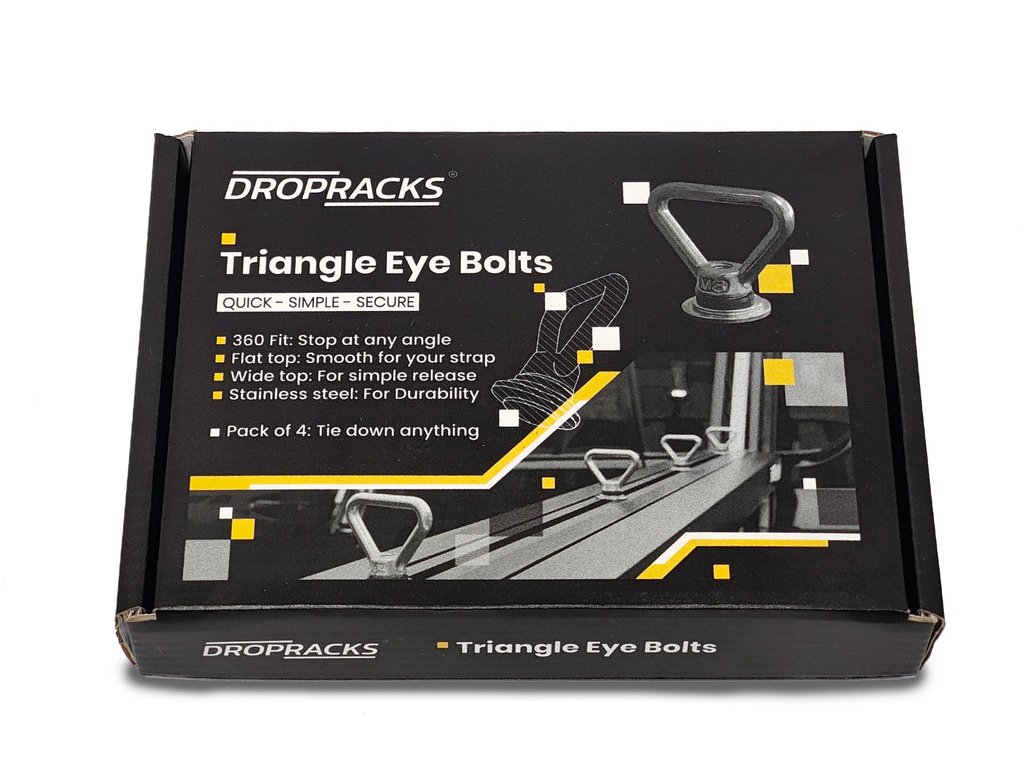 Śruby z uchem to prosty sposób na wykorzystanie pasów mocujących do zabezpieczenia dowolnego ładunku na Dropracks, ponieważ opasanie wokół drążka Dropracks uniemożliwiłoby ruchomy mechanizm.